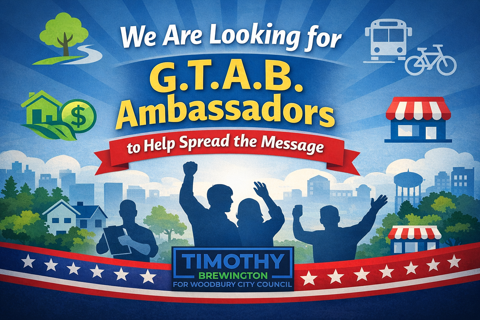 To help carry that message, I’m forming a small team of G.T.A.B. Ambassadors (Green Space, Transportation, Affordability, Thriving Businesses).